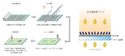 基板に塗布された配光膜に、直接偏光の紫外線を照射することで、液晶画面などの光の透過率がアップします。
